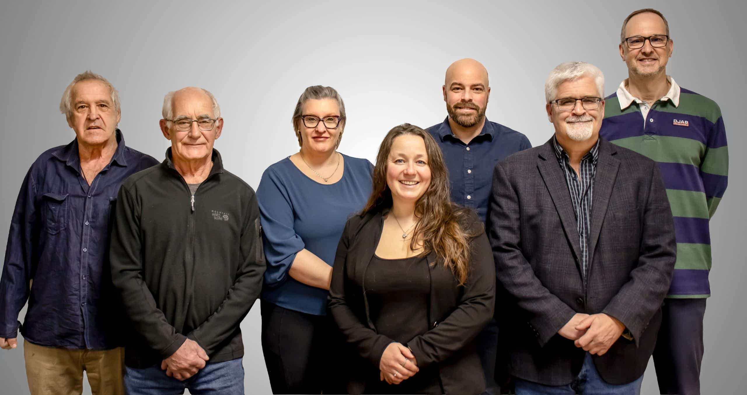 De gauche à droite : Jacques Picard, Rock Simard, Nancy Picard, Pamela B. Steen (mairesse), Mathieu Laliberté, Matthew Farfan et Patrick Prince.